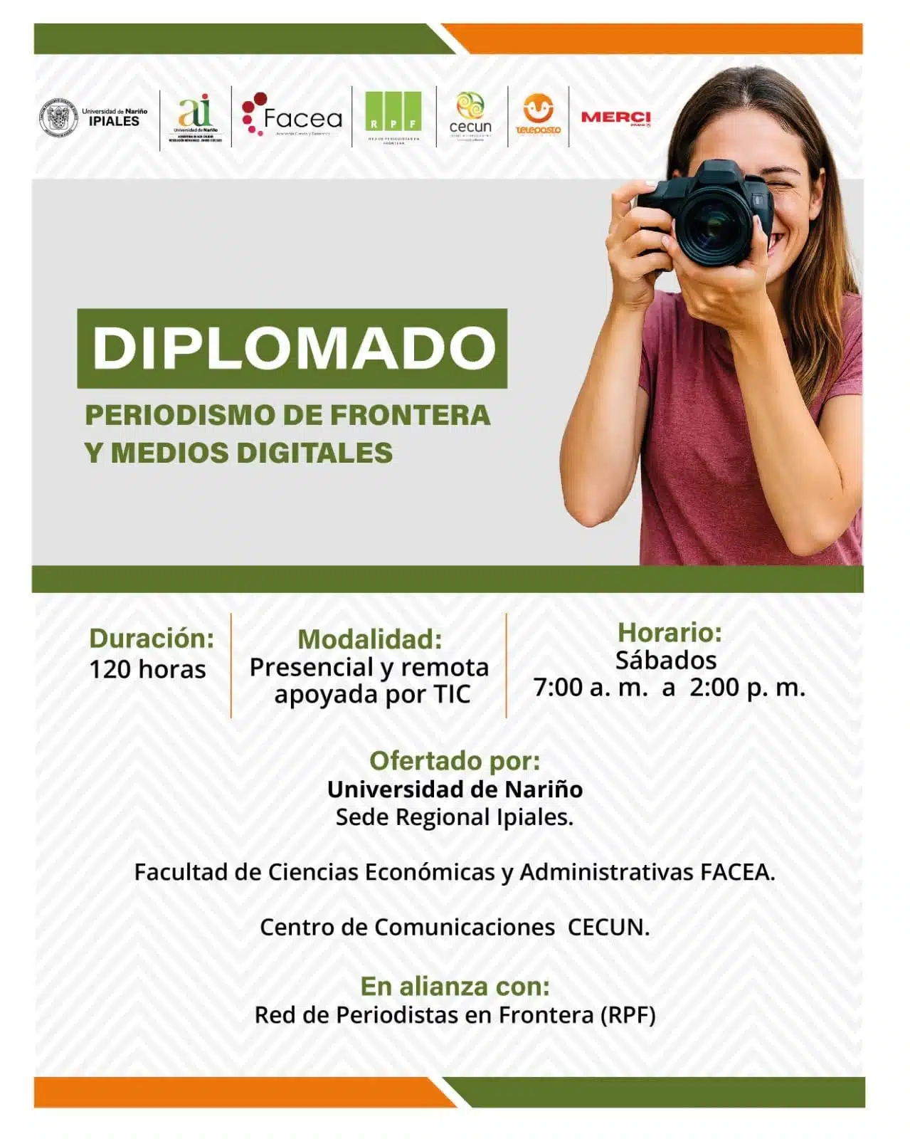 Con el propósito de robustecer las capacidades periodísticas en escenarios de frontera y adaptarse a las dinámicas de los medios digitales, la Universidad de Nariño (Udenar) —a través de su sede en Ipiales— y la Red de Periodistas en Frontera (RPF) ponen en marcha un proceso académico de alto nivel. El Diplomado en Periodismo de Frontera y Medios Digitales, que se inaugura este jueves 25 de septiembre, se enmarca en la estrategia institucional de regionalización y en las funciones misionales de docencia, investigación e interacción social que impulsa la universidad.
