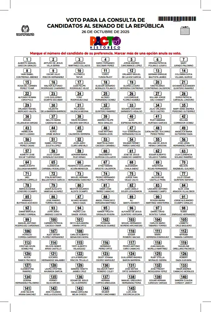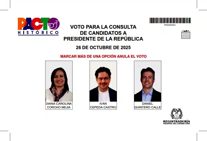 Sin embargo, aún persisten interrogantes legales sobre si el ganador de esta jornada podrá participar en una eventual consulta interpartidista en marzo de 2026. Mientras el CNE sostiene que el Pacto Histórico aún no existe como partido fusionado, la Registraduría imprimió los tarjetones con su logo, dando a entender que se trata de una coalición unificada.