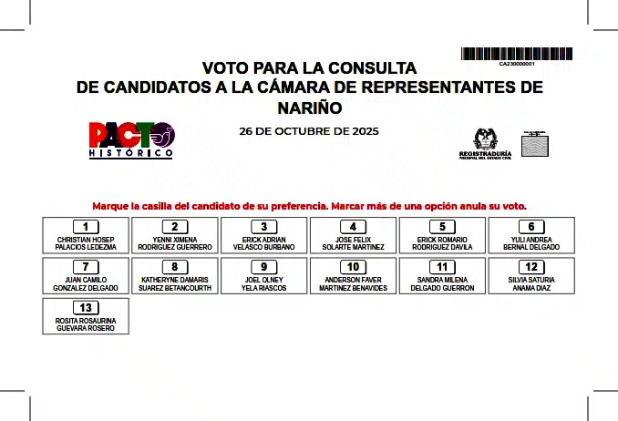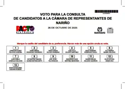 Cada votante recibirá tres tarjetas electorales: una para elegir el precandidato presidencial, otra para escoger los candidatos a la Cámara de Representantes —con 13 nombres para Nariño— y una más para la lista al Senado, que incluye 145 aspirantes.